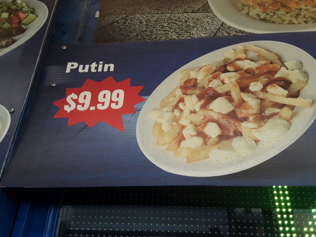 I liked the poutine/Putin line in “not the 51st state.” It reminded me of a Vancouver restaurant’s store-front photo: